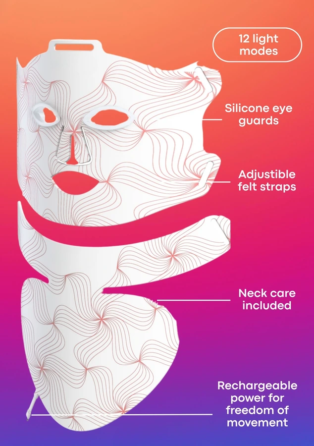 Equipped with 656 high-quality, evenly distributed lights, across 4 different wavelengths to ensure full facial coverage, promoting consistent and reliable results as part of your at-home skincare routine.